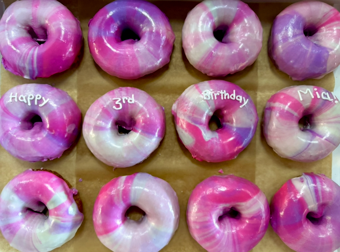Custom Donuts : Birthdays, showers, weddings, business event, anniversaries, & celebrations!